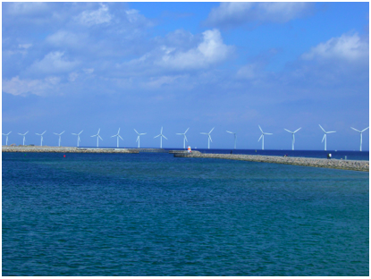 Afortunadamente no fuimos directamente al lugar, y primero me llevó a la playa de Amager que está como a 1.5 Km de nuestro apartamento. Me pareció un lugar muy bonito. Ves a algunas familias paseando, otras personas corriendo, algunos practicando deportes acuáticos como el windsurfing, pero lo que más me llamó la atención fue una gran fila de generadores eólicos internada en el mar. No hay que perder de vista que Dinamarca es un líder mundial en la producción de esos aparatos, que ocupa la quinta posición en el mundo en la lista de productores de energía eólica, y que además genera el 20% de su electricidad por medio de este sistema.