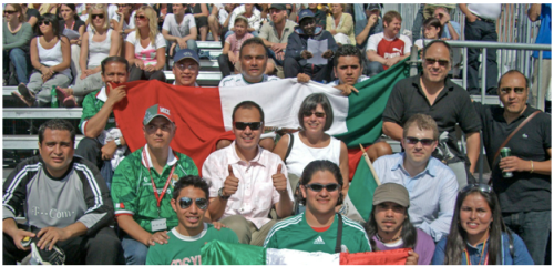 Hoy estuvo lleno de actividad. Como es sábado las tribunas estaban llenas. Llegué a la hora en que comenzaba nuestro himno nacional. Después escuchamos el de Holanda, y el partido comenzó. Nuestros rehabilitados hicieron sentir orgullosos a todos los mexicanos ahí presentes. Jugaban como si tuvieran el salario de Cuauhtémoc Blanco. Cuando se escuchaban los gritos aislados de ¡Vamos México! nos buscábamos, nos identificábamos y nos saludábamos. Afortunadamente los ruidosos brasileños se unieron a un par de mexicanos en la tribuna para constituir una porra a favor de México (tómese en cuenta que México era el único equipo latino “vivo” ya que Argentina, Brasil y Chile quedaron en el intento…).