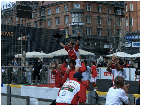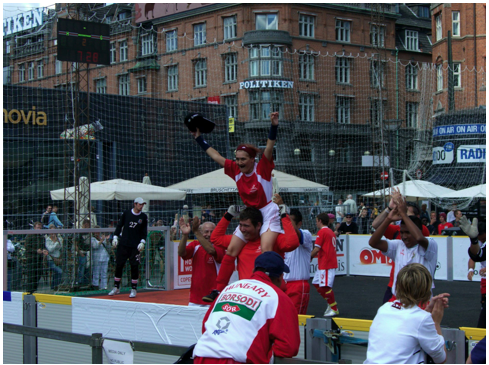Quería felicitar a los jugadores. Lo hicieron muy bien. Mucho mejor de lo que lo hacen nuestros mediocres profesionales. Cuando localicé a la selección ya estaban rodeados de los paisanos: Unos que venían de vacaciones, un matrimonio que vive en Copenhague, los que venían de México acompañando a la selección. Nos saludamos, felicitamos a los jugadores, y nos tomamos fotos con las cámaras de cada uno. El Capitán nos agradeció nuestra presencia y nos expresó lo bien que los hacíamos sentir. Fue una tarde muy intensa y emotiva. Viva México y los mexicanos…a huevo!