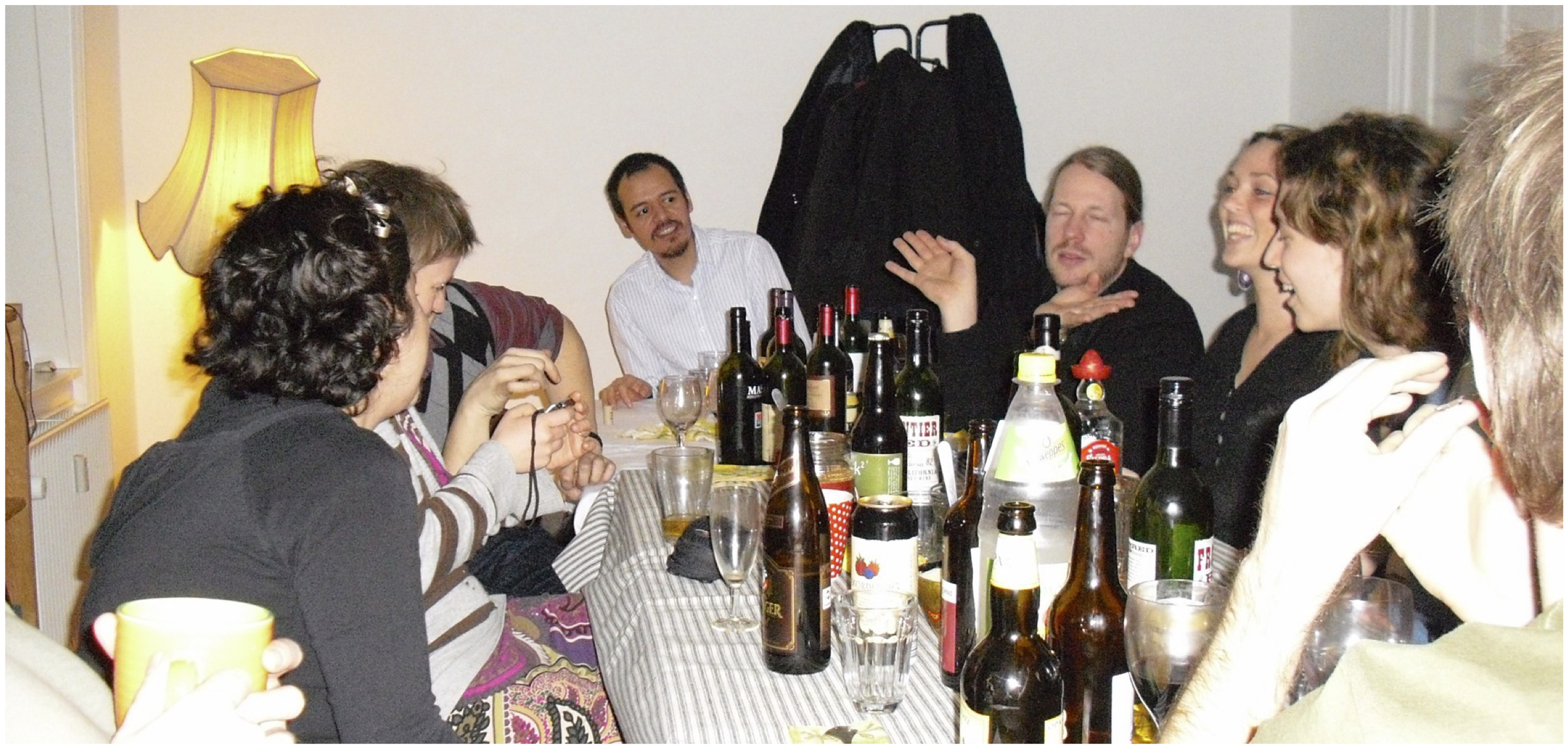La idea de la cena es simple: aproximadamente cada dos meses uno de los estudiantes de doctorado del IMFUFA organiza una cena en su casa para los demás estudiantes de doctorado del departamento. El anfitrión es el encargado de proveer la comida y los invitados deben traer consigo el alcohol y demás sustancias necesarias para que la cena sea divertida. El 27 de febrero del 2009 yo estuve a cargo de la más reciente cena de doctorado del IMFUFA.
