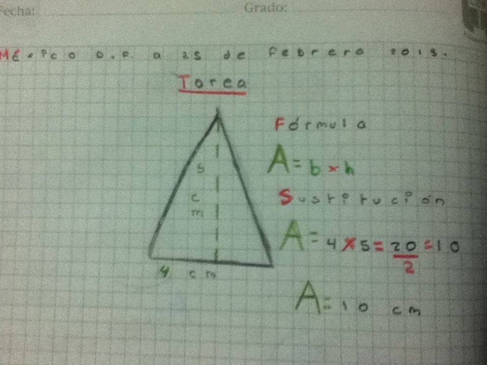 Figura 1. Cálculo del área de un triángulo expresada en centímetros y no en centímetros cuadrados como debería ser.